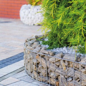 5 mm starkem Rundstahl sind ideal geeignet, eigene individuelle Gestaltungsideen im Garten zu verwirklichen. Je nach Bedarf können die Komplettsets in verschiedenen Abmessungen gewählt werden. Die Gabionenzäune in den Breiten 120 cm und 200 cm verfügen über zwei Pfosten. Diese sind innenliegend und somit bei befüllten Gabionenzäunen nicht zu sehen.