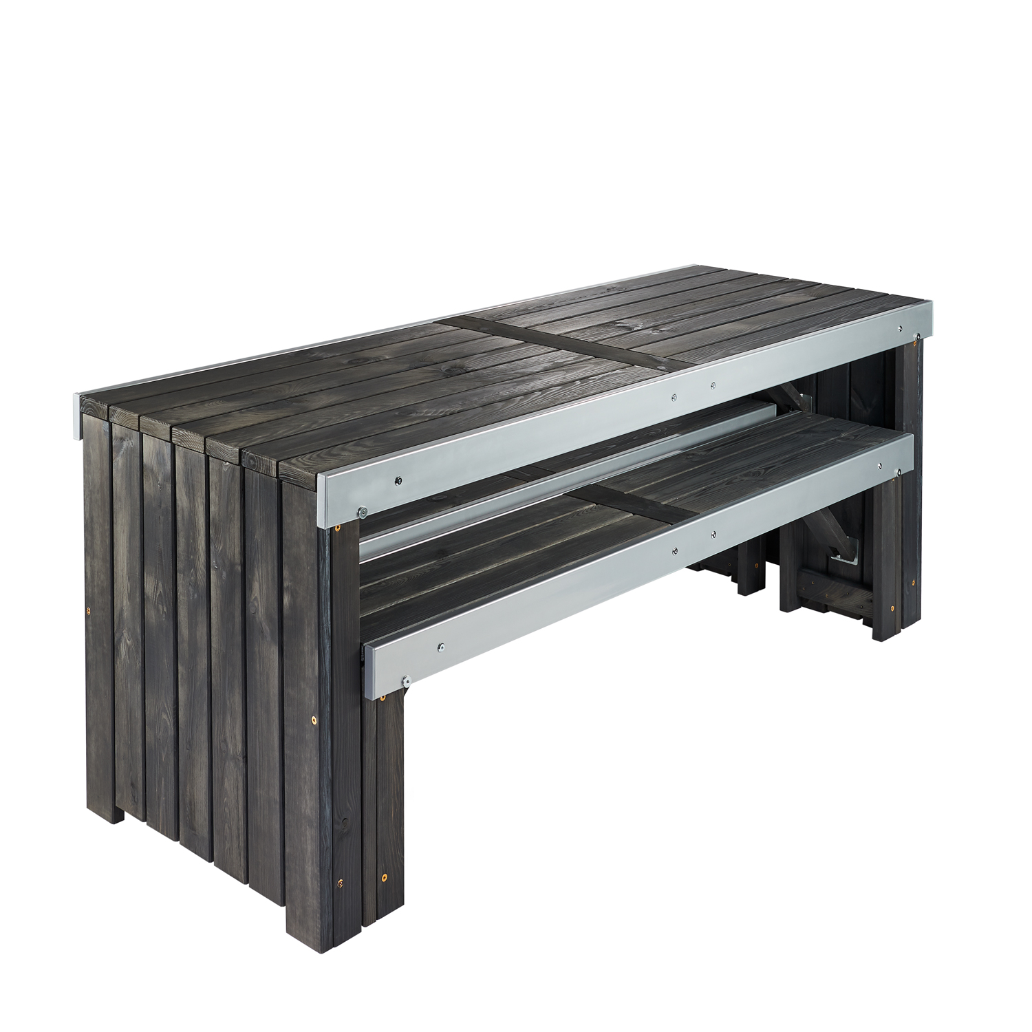 Sie besteht aus einem Tisch und zwei Bänken und ist durch die optional erhältlichen Gartenstühle beliebig erweiterbar.
