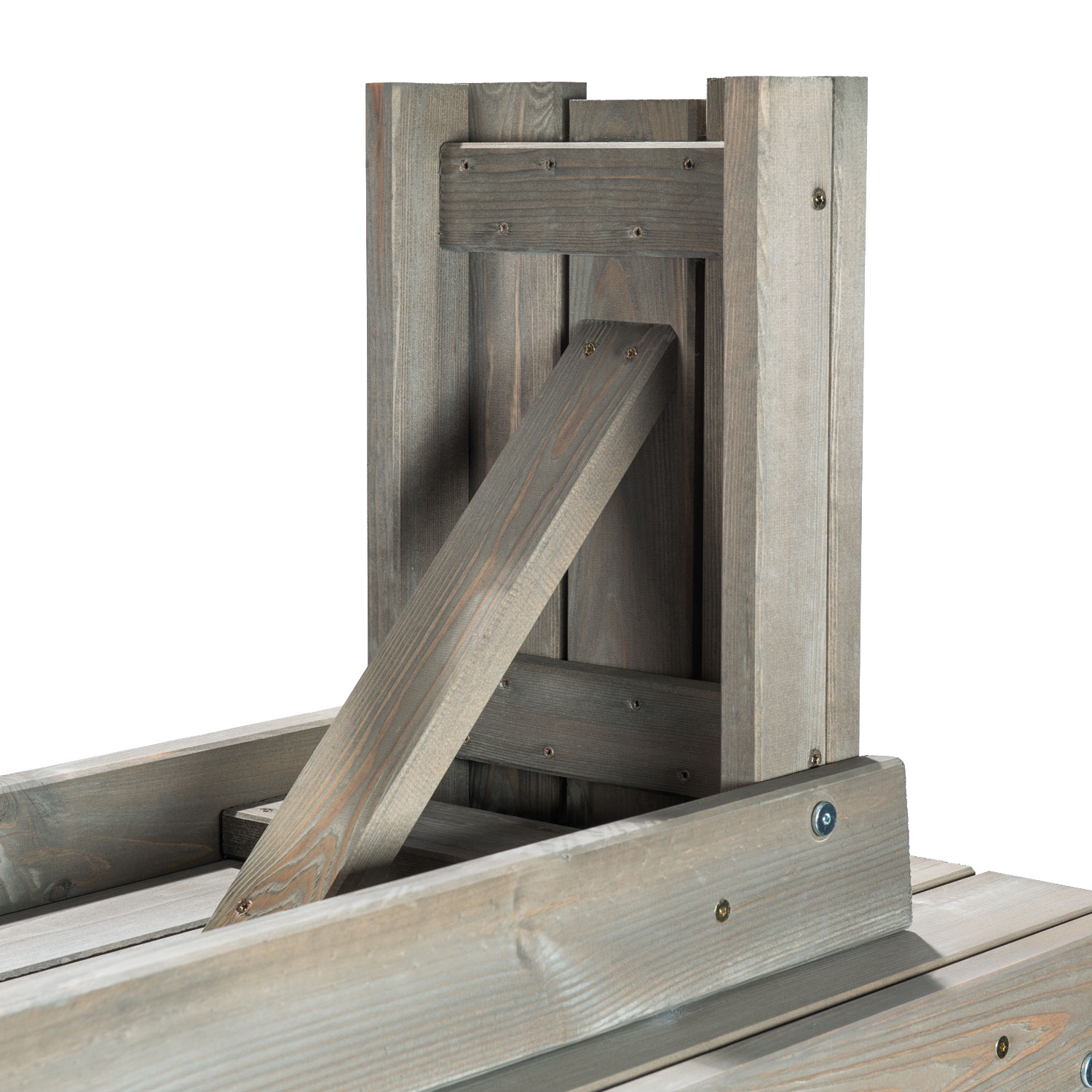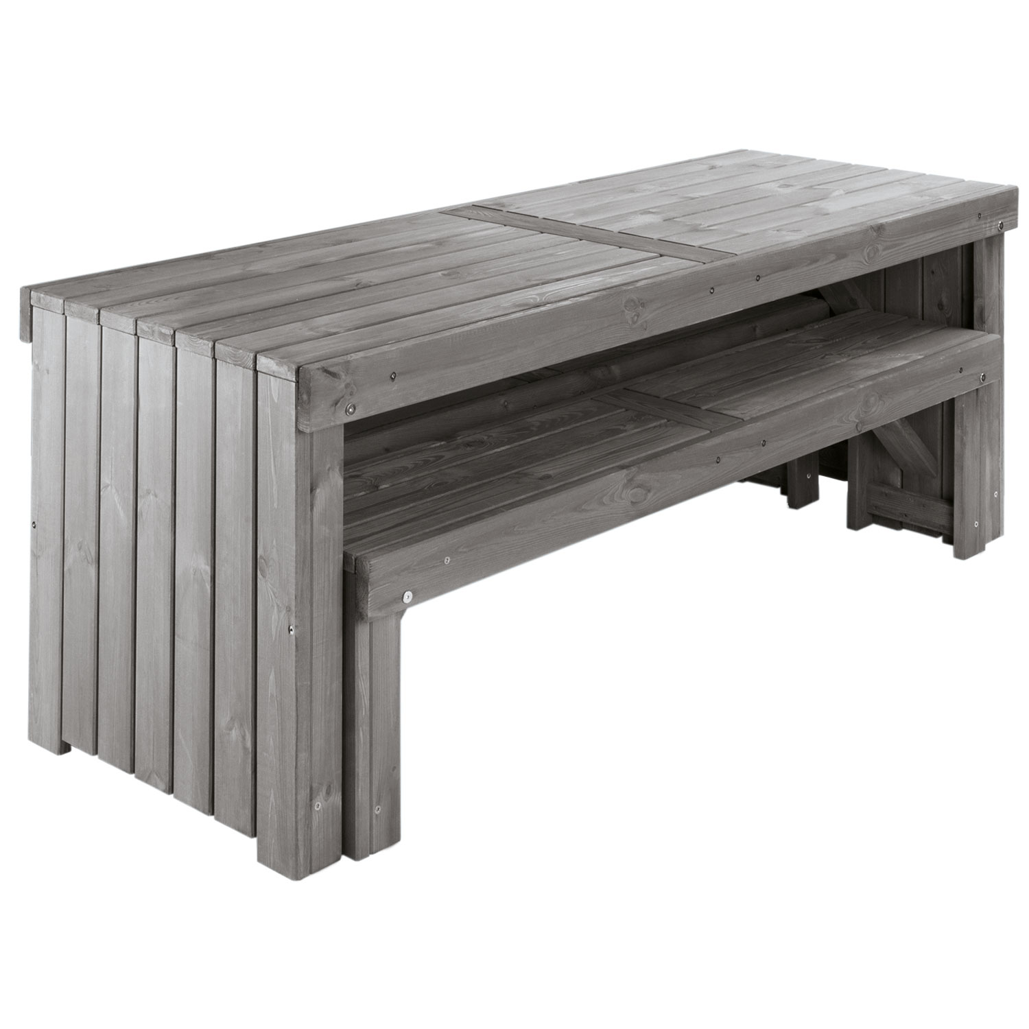 Auf den solide verarbeiteten Bänke finden jeweils 3 Kinder bequem Platz, und auf dem 118 cm langen Tisch können viele Leckereien platziert werden. Die Möbel aus behandeltem oder wahlweise naturbelassenem massiven FSC® zertifizierten Kiefernholz sind ein europäisches Qualitätsprodukt und somit langlebig und wetterbeständig.